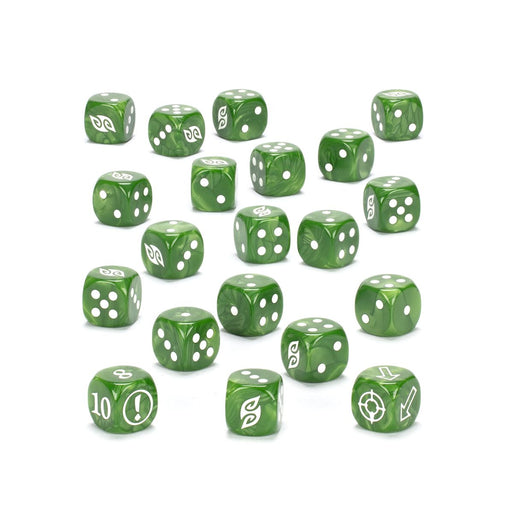 View full detailsA set of 20 Wood Elf Realms-themed dice for Warhammer: The Old World They are cast in metallic green acrylic plastic, with a pearlescent swirl eff...